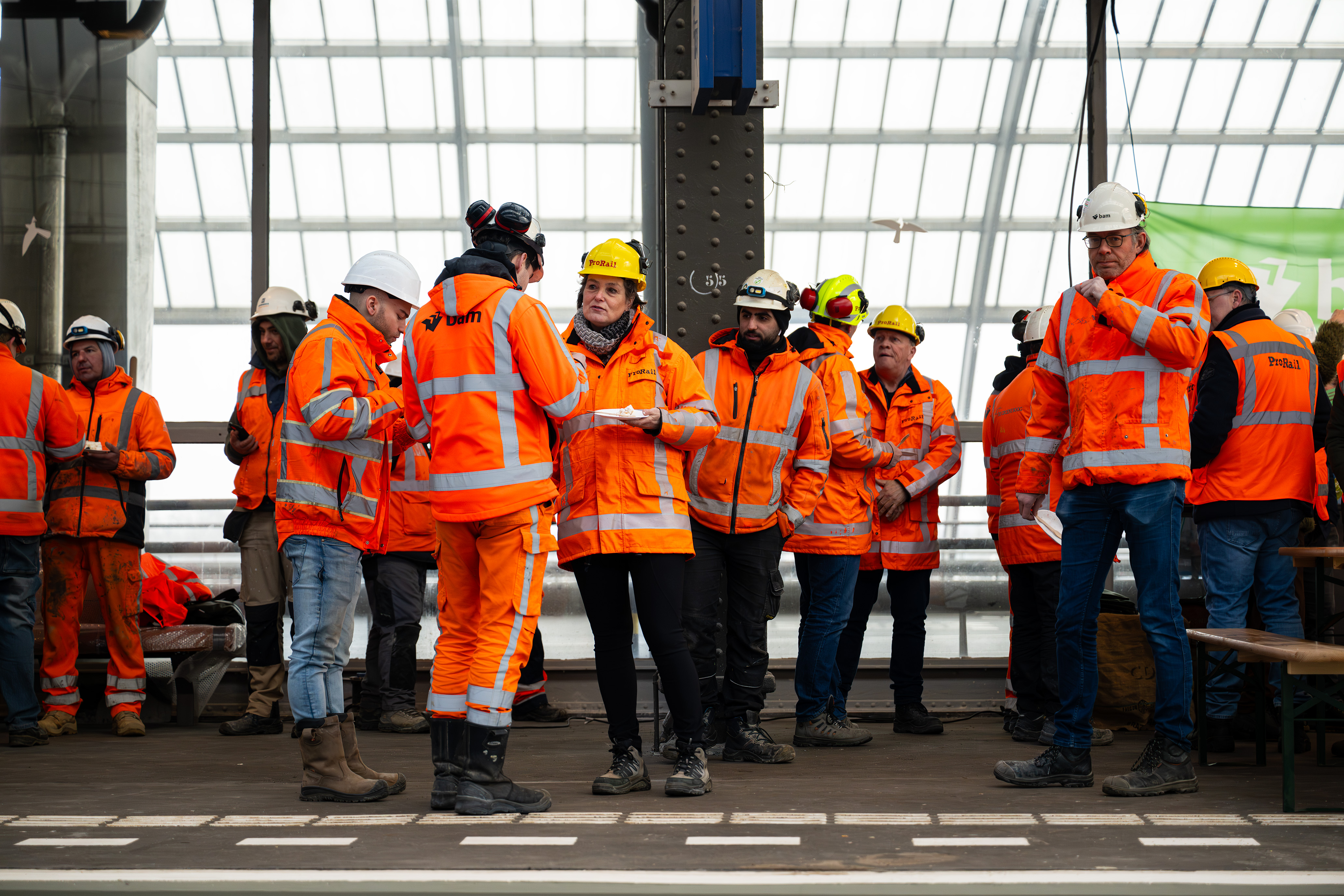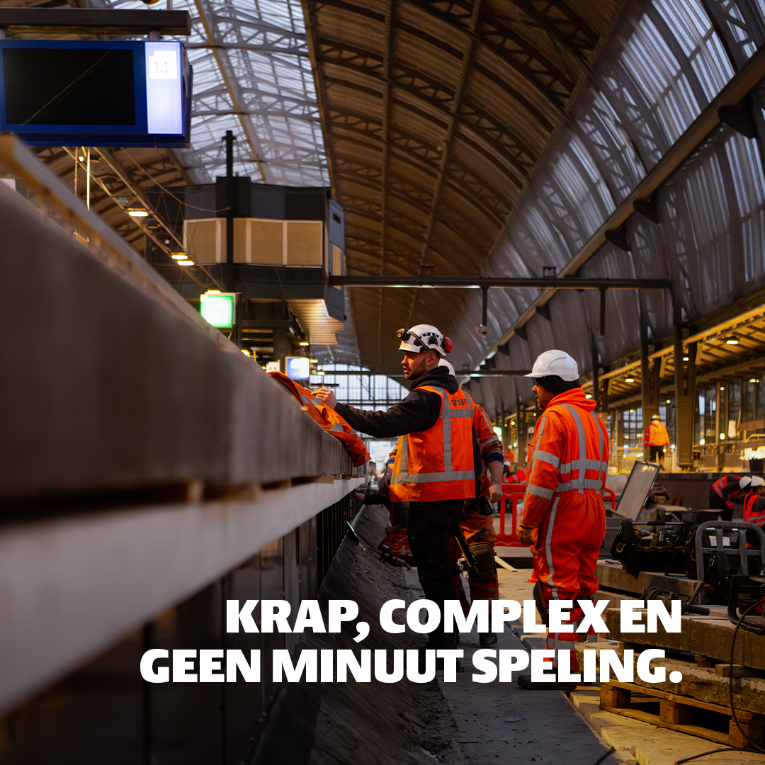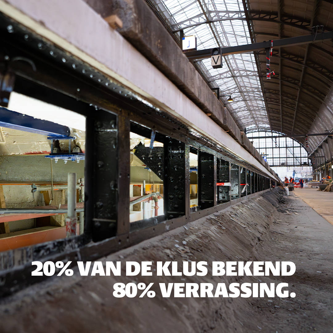 ‘Ik vond het heel bijzonder om aan dit project te werken: een 100 jaar oude constructie, in hartje Amsterdam, met rijdende treinen en 200.000 reizigers per dag’, zegt Twan.’ Zo’n uitdagende renovatie, met grote tijdsdruk en onverwachte situaties, vraagt om goede voorbereidingen en de flexibiliteit om te snel te kunnen schakelen. Onze kennis en kunde nemen we mee naar volgende projecten in de grote vernieuwingsopgave in ons land. Mijn leerervaring is om opdrachtgevers en stakeholders zo vroeg mogelijk te informeren over de staat van het object. Dan ontstaan korte lijnen voor snelle beslissingen en snel bepaalde werkmethodieken om de werkzaamheden eerder in te plannen. Dat lukt alleen door goed samen te werken. Als je zo’n complex project samen voor elkaar krijgt, komt er aan het einde veel energie vrij. We hebben onze gezamenlijke prestatie mooi gevierd, in de buiten dienst gestelde spoorbak, met een grote taart.’
